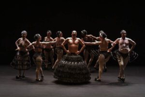 Si va a teatro anche per stupirsi e per incontrare quelle emozioni che solo uno spettacolo originale – costruito in tutti i dettagli della macchina drammaturgica – può dare allo spettatore. Dai personaggi alla scenografia, dai costumi alle musiche, dalle luci ai movimenti sincronici di corpi maschili e femminili sul palcoscenico. Diventa tutto un complesso congegno ben oleato che coinvolge e attanaglia. Non delude così Emma Dante con il suo stupefacente Re Chicchinella al Teatro San Ferdinando di Napoli fino al 10 novembre. Adattato da una fiaba de “Lo cunto de li cunti” ovvero Lo trattenemiento de peccerelle, meravigliosa raccolta di novelle in lingua napoletana che Giambattista Basile creò nel 1634. E dopo La Scortecata e Pupo di zucchero, l’eclettica regista siciliana conclude la trilogia ispirata appunto a Lo cunto de li cunti di Basile.