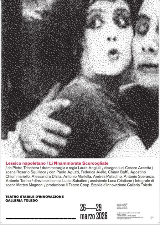 Debutta giovedì 26 marzo alle 20.30 (repliche venerdì 27 alle 19, sabato alle 20.30 e domenica alle 18) la nuova produzione del Teatro Galleria Toledo di Napoli, “Li ‘nnammorate scorcogliate” da Pietro Trinchera, drammaturgia e regia Laura Angiulli. In scena Paolo Aguzzi (Pestacchio), Federica Aiello (Rina), Chiara Baffi (Graziella), Agostino Chiummariello (Attaveo), Alessandra D’Elia (Tolla), Antonio Marfella (Giacchimmo), Andrea Palladino (Abate), Antonio Speranza (Scrupolo) e Antonio Torino (Ndoniello/Petrillo). Disegno luci Cesare Accetta. Scena Rosario Squillace.