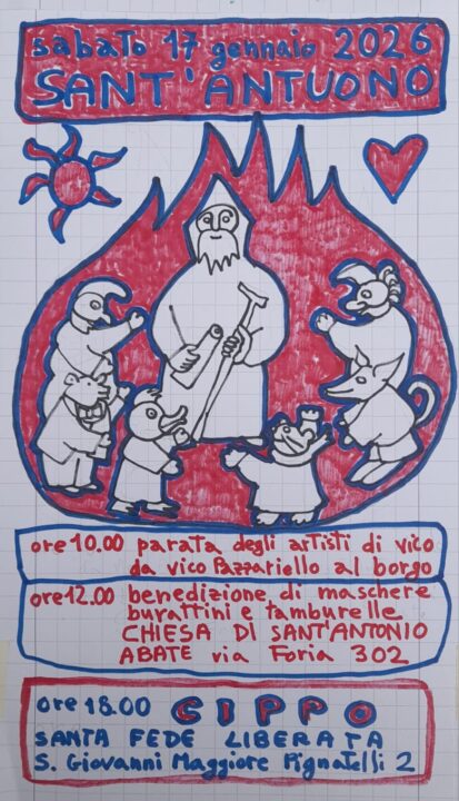 Qualche titolo: le tradizionali “Storie di Pulcinella”, “‘O cacador” con burattini della tradizione portoghese. E ultimo in  ordine di tempo, “La favola di Sant’Antuono“, che sarà rappresentata sabato 17 gennaio 2026, in tre momenti della giornata. Alle 11 ci sarà la parata degli artisti dia Vico Bardariello al Borgo. Subito dopo, alle ore 12, la benedizione di maschere, burattini e tamburelle, nella chiesa di Sant’Antonio Abate. Alle ore 18: “Cippo. Santa fede liberata” in San Giovanni Maggiore Pignatelli.