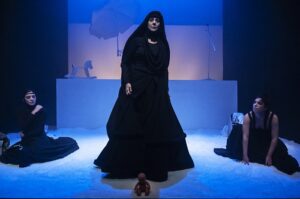 Presentato da Anonima Romanzi Teatro Elicantropo e Fondazione Teatro Due di Parma, l’allestimento vede protagoniste in scena Imma Villa, Mariachiara Falcone, Cecilia Lupoli, Serena Mazzei, con i costumi a cura di Antonella Mancuso e le musiche di Paolo Coletta.