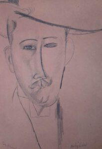 Amedeo Modigliani disegna il “Ritratto di Gillet” tra il 1917 e il 1919, è un’opera che cattura l’essenza del soggetto con il tipico stile allungato e stilizzato dell’artista. La figura di Gillet, amico e collezionista di Modigliani, è rappresentata con linee fluide e delicate che accentuano le caratteristiche principali del volto, come il collo lungo e il viso ovalo. Il disegno, privo di dettagli superflui, si concentra sull’espressione serena e meditativa del soggetto, conferendo al ritratto una qualità intima e riflessiva.