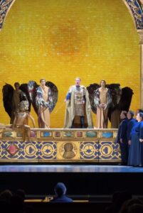 Un aspetto fondamentale di questa produzione è stata la scenografia curata da Massimo Checchetto. Si è ispirato alle architetture bizantine della basilica di San Marco e ha creato un ambiente visivamente accattivante ma anche simbolico.