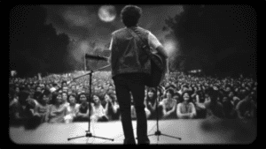 “Sono solo canzonette”, inizia con le immagini dello stadio di San Siro affollato, dove per primo si esibì come artista.