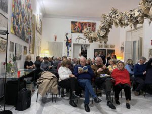 Nella splendida sala della sontuosa dimora di Mena Vecchione, nello storico, magnifico Palazzo dello Spagnuolo a Napoli l’autore ha subito coinvolto il numeroso pubblico, leggendo alcune pagine. Ha dato poi la parola ai relatori.