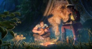La ricerca della mitica terra della Musica da parte di Yaya e Lennie (e la colonna sonora è una vera e propria contaminazione di folk, tarantella, tonalità africane e musica classica come la Pastorale di Beethoven) spingerà la coppia di amici alle soglie dell’Istituzione, una nuova forma di governo cui cerca di sottrarsi con ogni mezzo la Resistenza arborea, pronta anche alla Rivoluzione in salsa “latinoamericana” (notevole il personaggio cui dà voce ed enfasi Francesco Pannofino, attore e noto doppiatore storico di George Clooney, tra i tanti).
